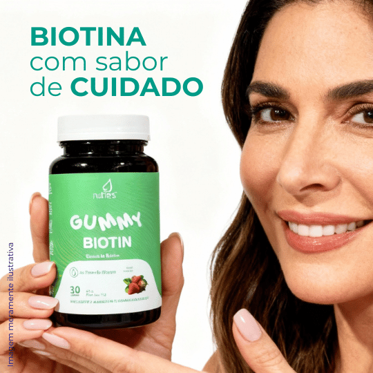A Biotina ativa a produção natural de queratina e proporciona resultados visíveis em poucas semanas.