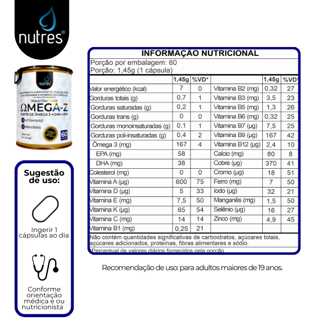 Nutres ÔmegA-Z é indicado para pessoas acima de 19 anos.